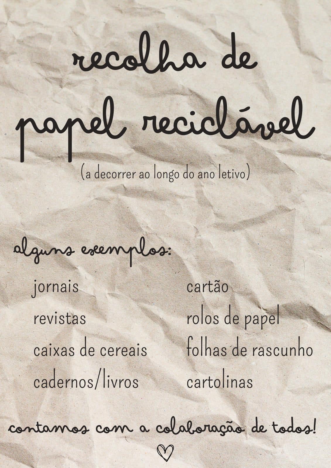 Em janeiro decidimos juntar o “cuidar” com o “receber”, e iniciámos um novo projeto abrangente a toda a comunidade educativa e famílias - recolha de papel reciclável.